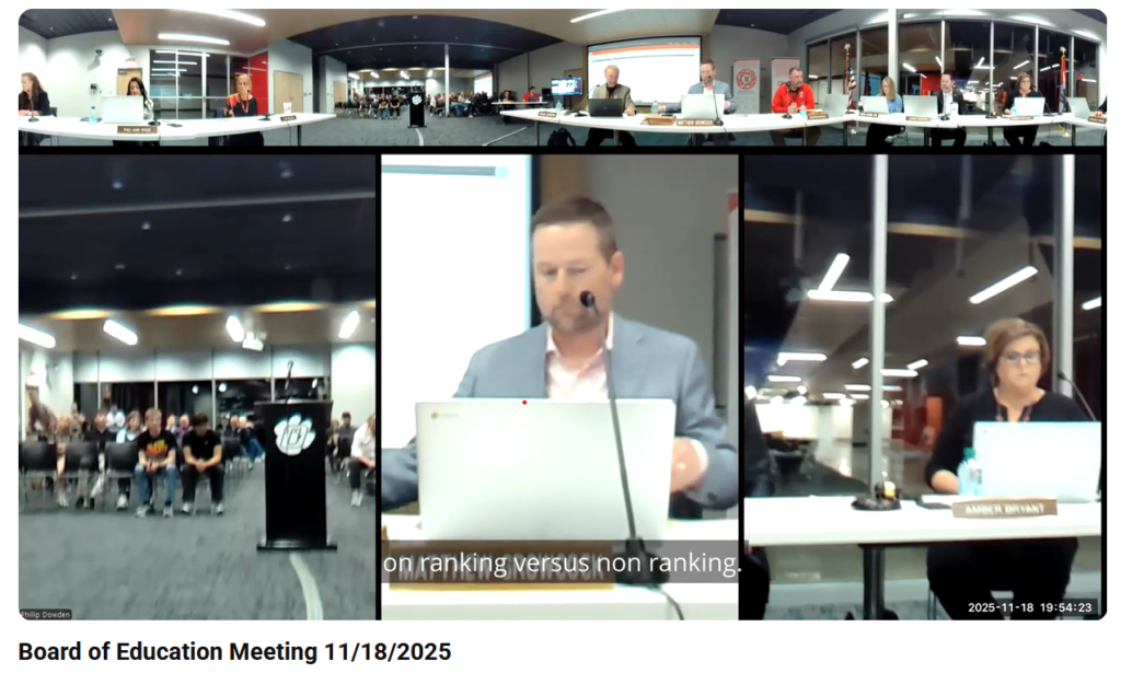 At the November evening meeting, several items were presented, including building improvement plans and an added stipend for directors who earn a Master’s degree, and there was also a hearty discussion on the issue of weighted grades and student ranking. There are links to the various reports and updates on the Agenda at https://simbli.eboardsolutions.com/SB_Meetings/ViewMeeting.aspx?S=99&MID=21788, and the meeting itself can be seen at https://www.youtube.com/watch?v=yjt_WD1M6BU&list=PLmr69vd6v4J4lqZDatLAttxOsiNoT_9Qr&index=1 (the discussion ranking begins around 1:30:25)